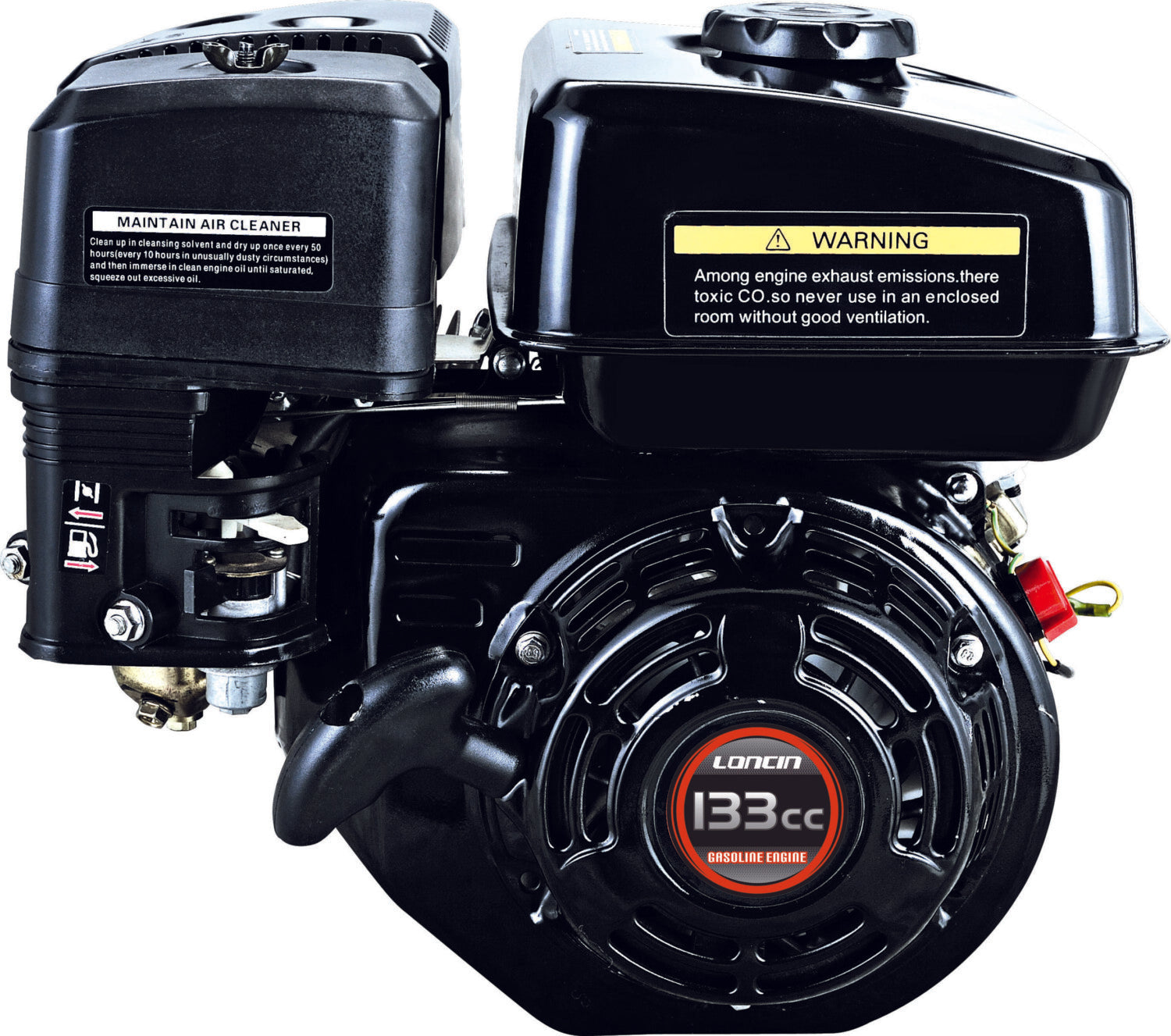 133cc, 2.6kw, 3.5hp, R shaft, 3/4", O/A, recoil repower